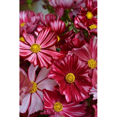 COSMOS VELOUETTE SEEDS - DEEP RED FLOWERS WITH WHITE STRIPES - 50 SEEDS