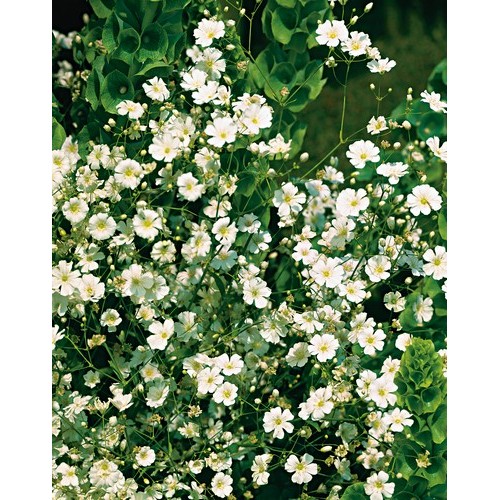 Gypsophila Paniculata Alba is a stunning popular perennial variety of Gypsophila. It produces a mass of pretty, dainty single white flowers. Grows to approximately 1m. Flowers all summer.
