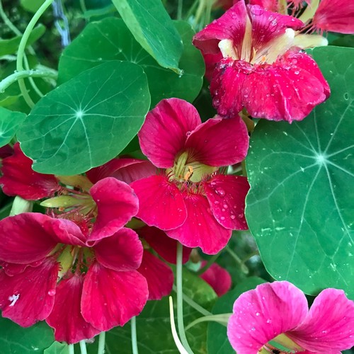 Nasturtium Jewel Cherry Rose is a beautiful variety of Nasturtium. It is a compact, bushy, dwarf annual variety of Nasturtium that will grow to a height of 25cm. It produces beautiful 2.5 inch semi-double Rose coloured Flowers and contrasting Green Lily Pad shape leaves. Easy to grow. Ideal for Pots, Containers and Window Boxes.